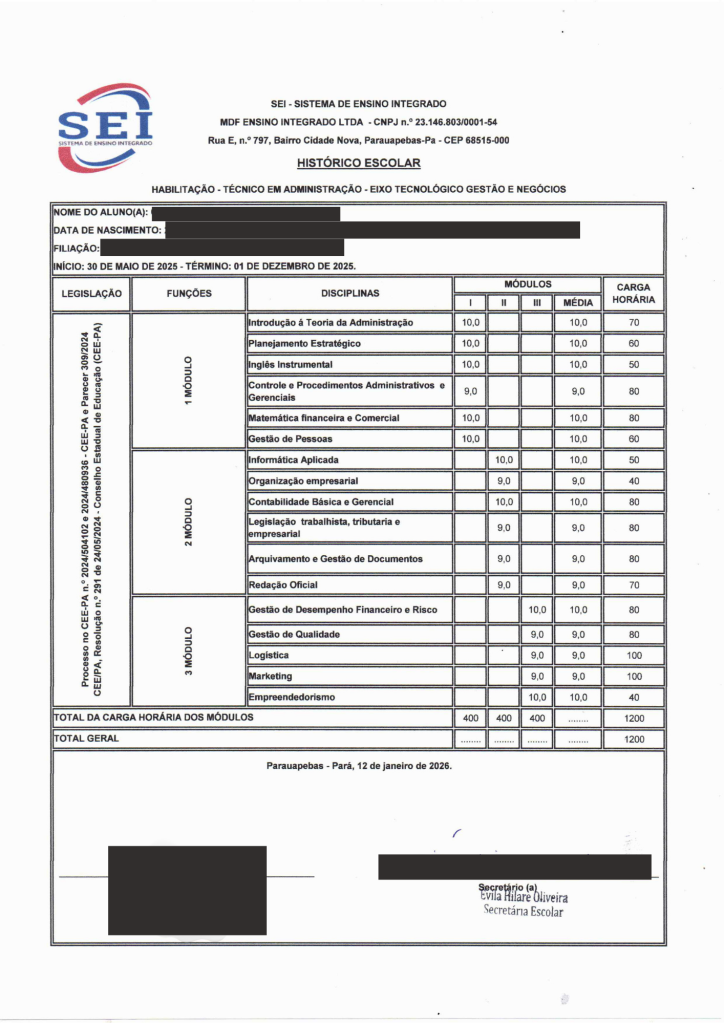 • Curso reconhecido pelo mec sistec