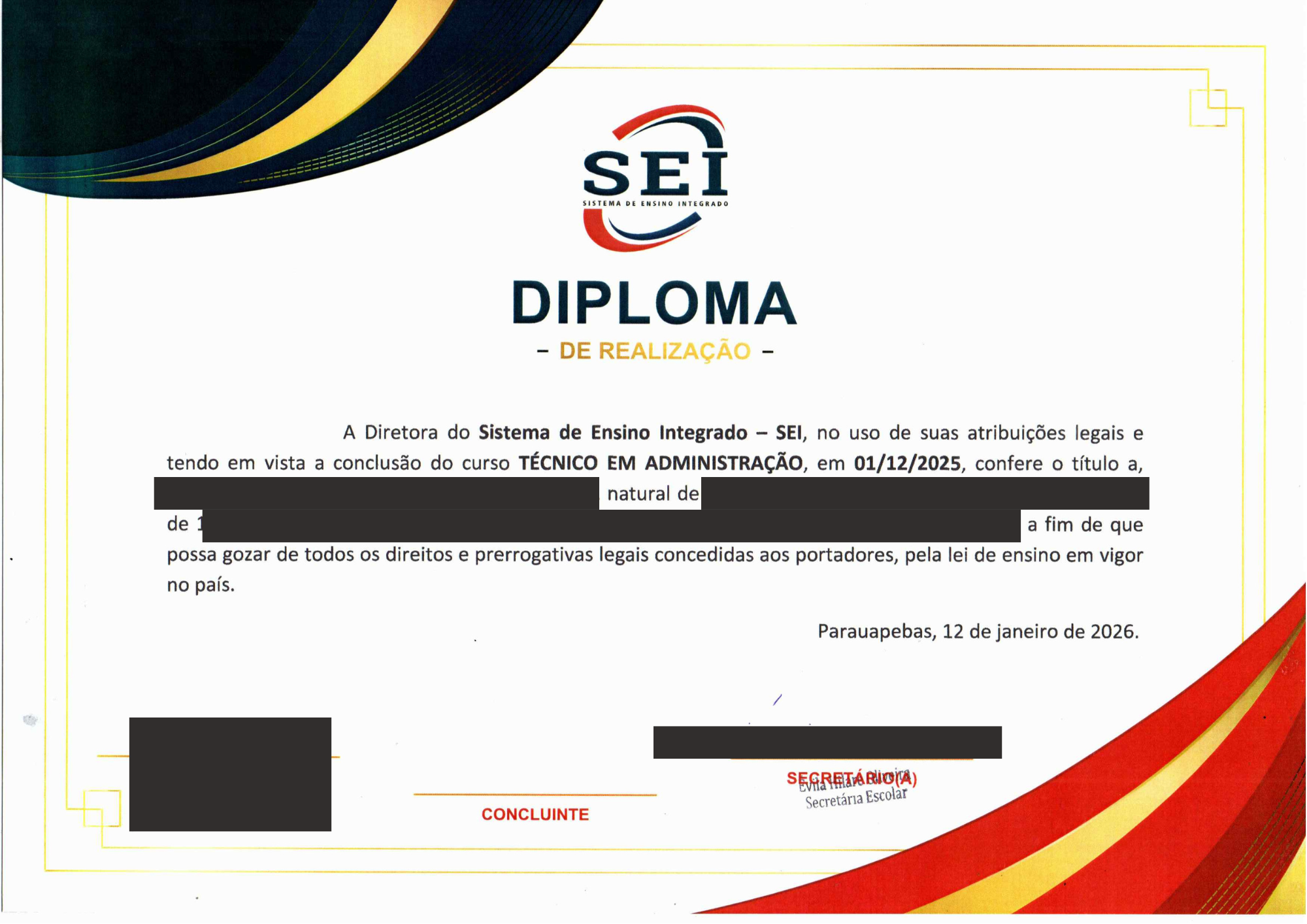 Modelo do Certificado de Técnico