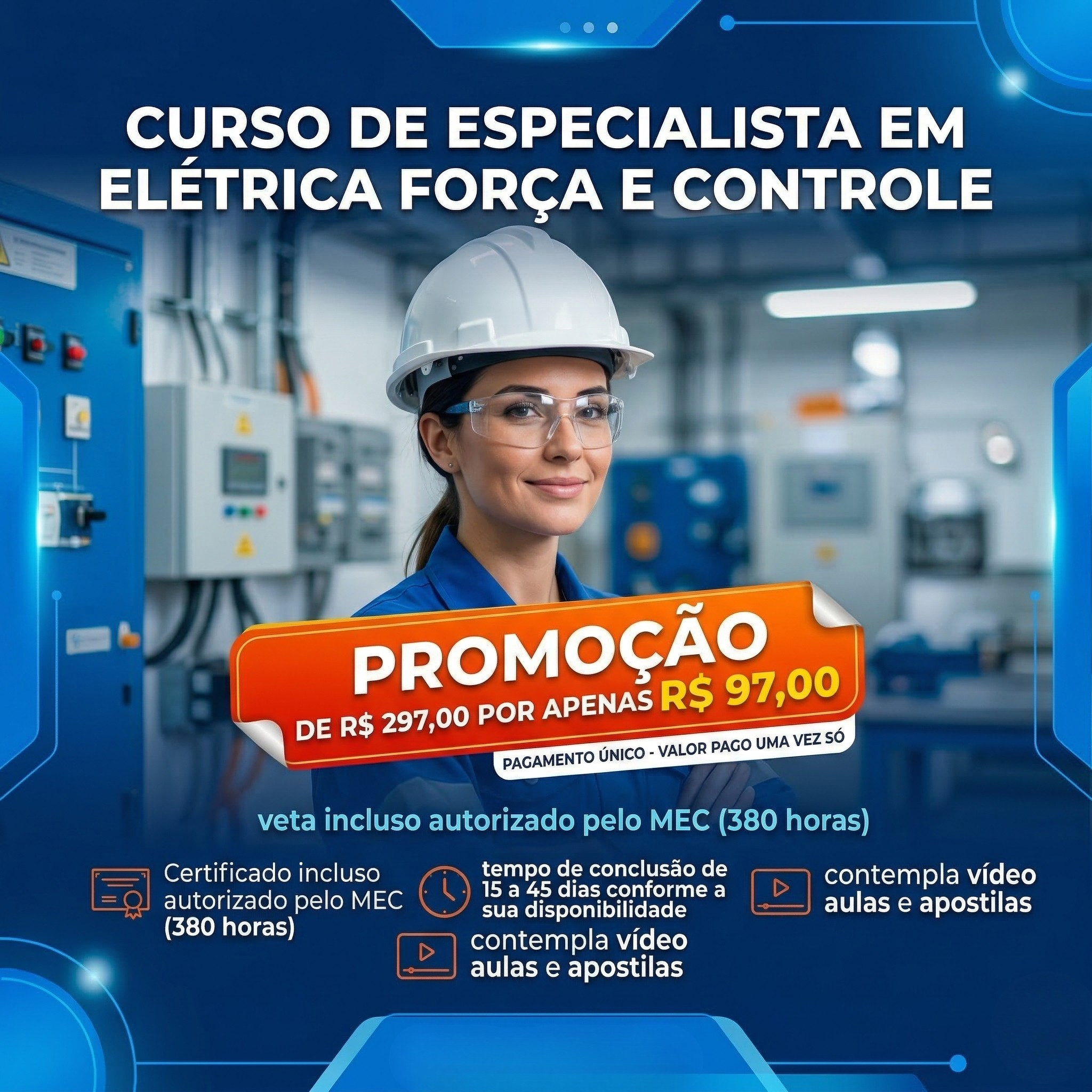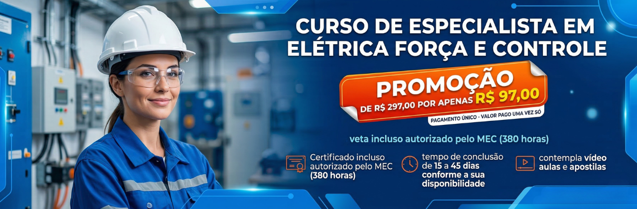 O curso de eletricista de força e controle ensina como instalar, montar, interpretar e fazer manutenção em sistemas elétricos industriais que acionam máquinas e motores.
